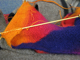 Ellyn Cooper has this beautiful kit for The Modular Capelet by Catharine Hennessy made up of a variety of colors of her one-of-a-kind hand-dyed yarns.